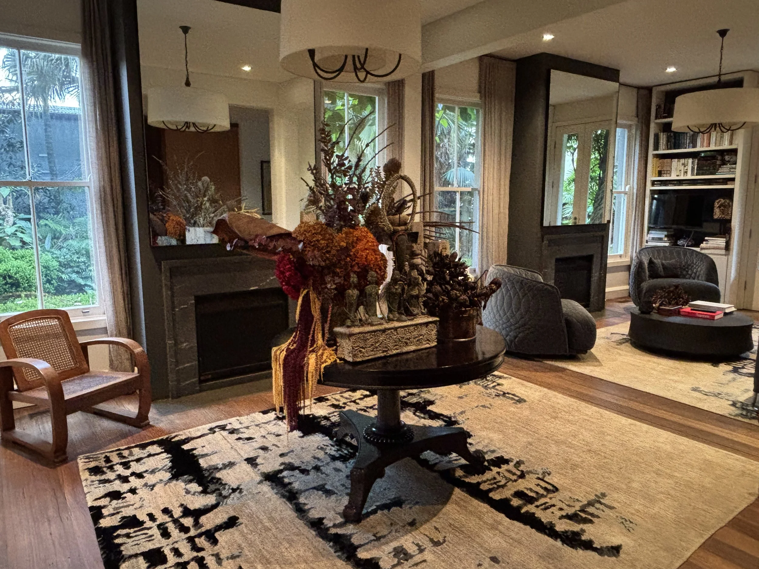 The interior styling thoughtfully blended antique furniture, reimagined with contemporary finishes, alongside sleek modern pieces. This fusion of old and new created a timeless aesthetic that honours the property’s character while introducing current design trends. Lighting updates incorporated layered fixtures that improved functionality and ambience, accentuating the home's striking elements with subtle sophistication.