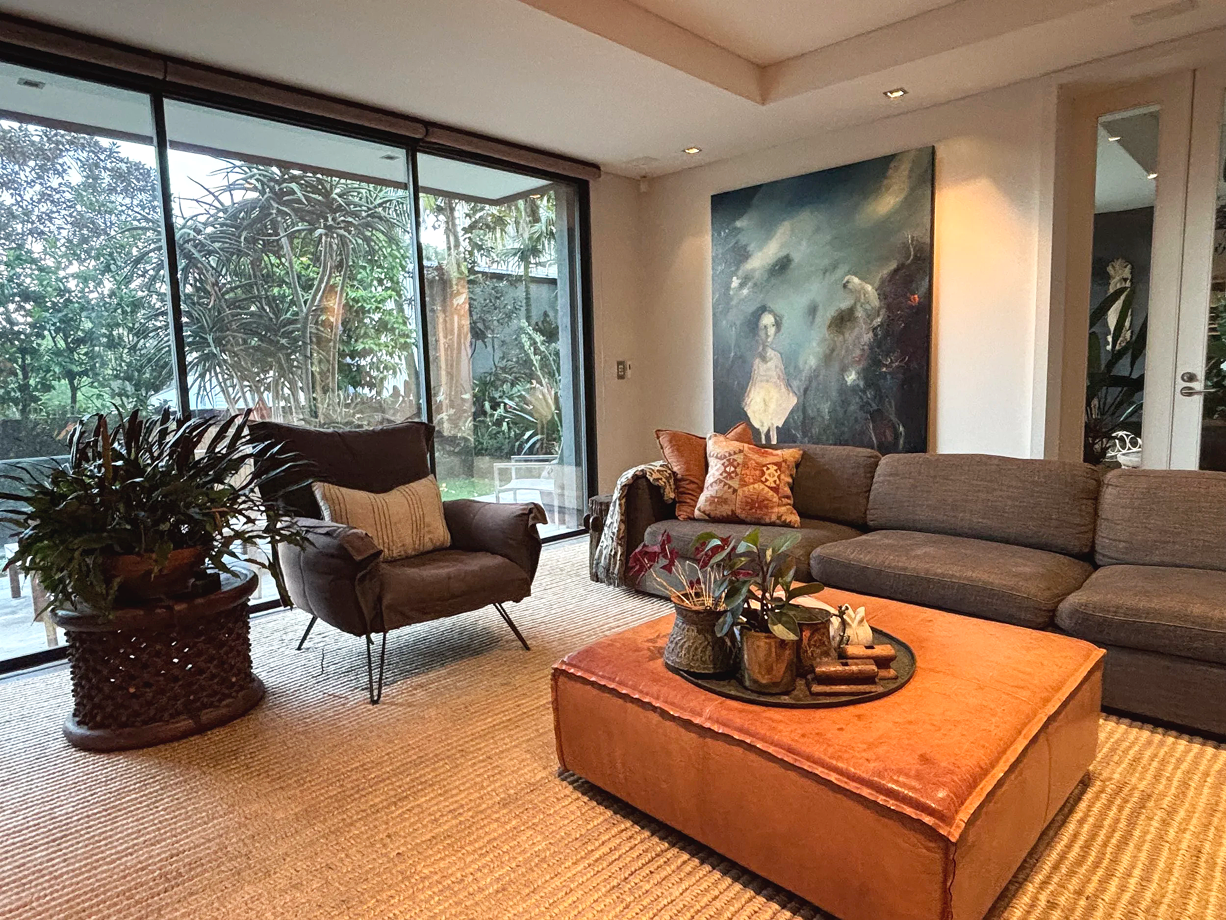 The indoor-outdoor glasshouse was redesigned into a lush sanctuary, featuring vibrant greenery, comfortable seating, and natural materials. This space was crafted to be enjoyed year-round, providing a tranquil retreat that connects seamlessly with the surrounding garden environment and invites natural light to flood through. The result is an elegant, cohesive interior that celebrates both heritage and modern luxury, perfectly suited to the Edgecliff lifestyle.