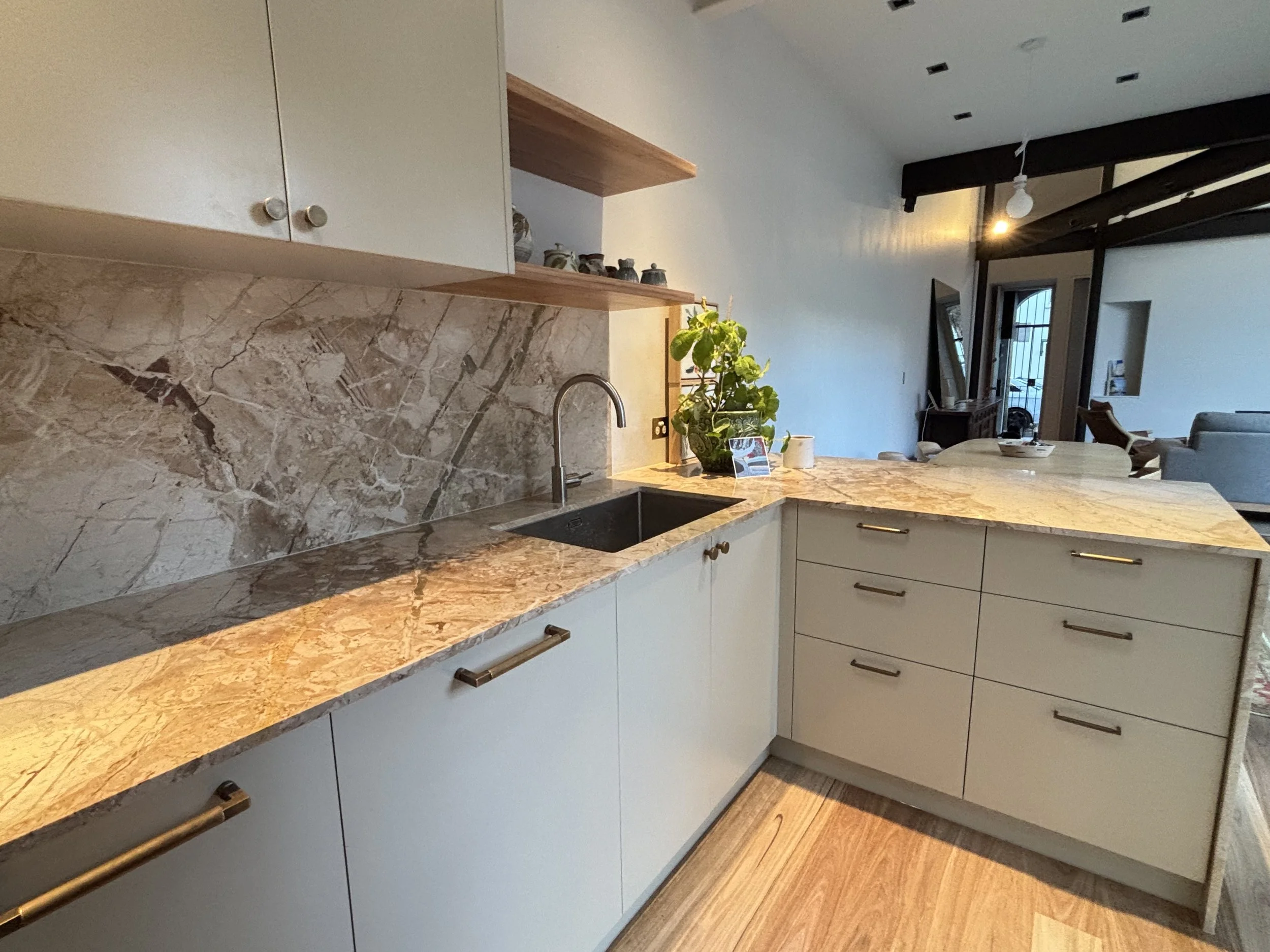 The refurbishment introduced a new kitchen and bathroom, providing modern functionality while enhancing the overall aesthetic. Blackbutt timber flooring was installed throughout the home, contributing warmth and a natural texture to the interior spaces. These improvements have completely changed the atmosphere, creating an inviting entertainer’s haven just off the dynamic Crown Street.